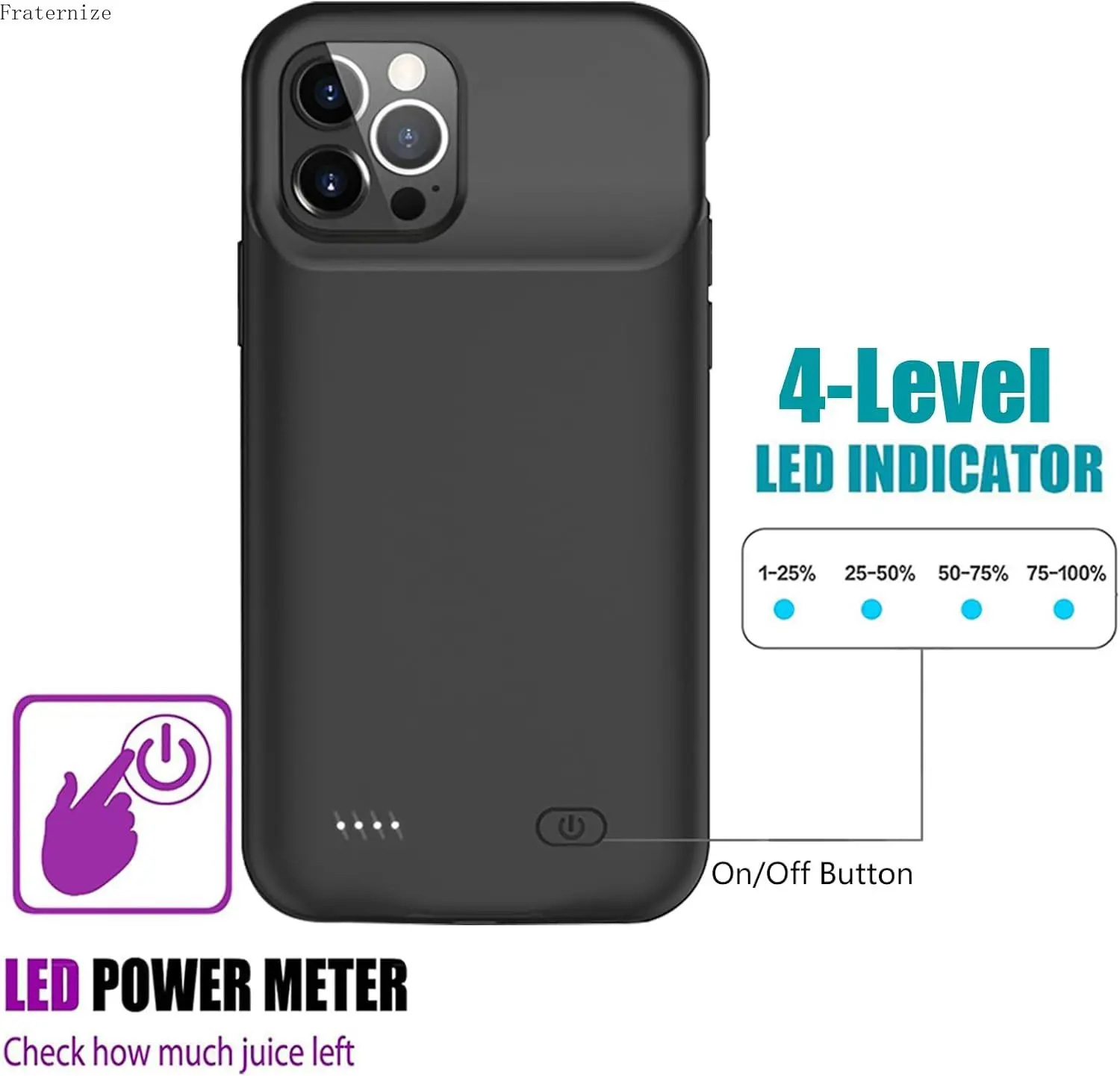 5. 4 LED indicator: Led indicator will show how much power Is left.(25%-50%-75%-100%). It is convenient for you to check the battery case condition at any time.