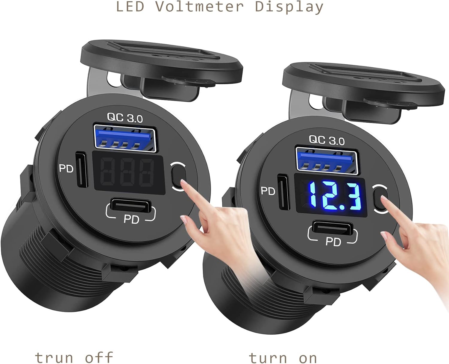 - 【LED Voltmeter and Button Switch】The switch controls 3 car USB ports and the voltmeter, the voltmeter automatically monitors the voltage of the vehicle, allowing you to know the condition of the car at any time. (Note! The switch is on by default, after the car is turned off, will turn back on when you start the car.