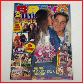 This is a rare vintage Bravo Germany Music Magazine from July 1996, issue #31. It features iconic artists and celebrities such as Sqeezer, East 17, Fugees, Bon Jovi, Backstreet Boys, Eloy de Jong (Caught in the Act), Kiss, Pamela Anderson, Gary Barlow, DJ Bobo, Michael Jackson, Soundgarden, Dogstar, Biohazard, Tic Tac Toe, and more.