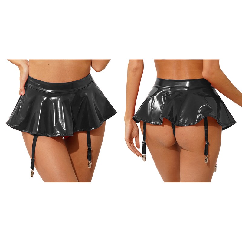 Stylish design patent leather skirt can better highlight your body with leather crop top, camisole, tank top or tube top.