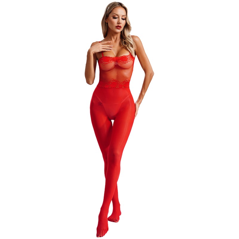 Full-body jumpsuit brings you silky and skin-like feelings, arousing emotions and showing off your curvy body. One size fits for most.