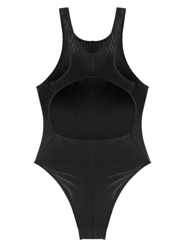 Women Solid Color Glossy One-piece Swimsuit Ladies Cutout Back Bodysuit Leotard Swimwear.