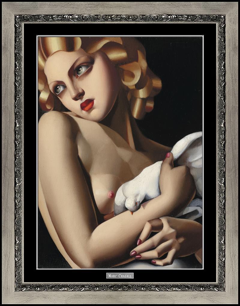 Tamara De Lempicka (1898-1980) was a master artist and brilliant exponent of the Art Deco style which celebrated the modern "machine age" emerging in the early decades of the 20th Century. Ms. de Lempicka was probably the most famous painter of Art Deco style which was the rage in Europe and America during the 1920's. She was an icon of the "Jazz Age", a glamorous, unconventional, free-spirit who typified the "bohemian" lifestyle now associated with the Roaring 20's. Art Deco was an exciting and innovative form of art, architecture, furnishing, interior design, jewelry, and still seems contemporary and fresh after 80 years. Ms. Lempicka became an influential force early in the movement beginning with her exhibition at the first Art Deco expo in Paris. Her most popular paintings are: "Auto-Portrait", "Blue Lady with Guitar", "Candy & Calla Lilies", "Girl in Gloves", "White Drape Blonde", and "Blonde with Dove". She has enjoyed world-wide revival in popularity after super-star Madonna acquired