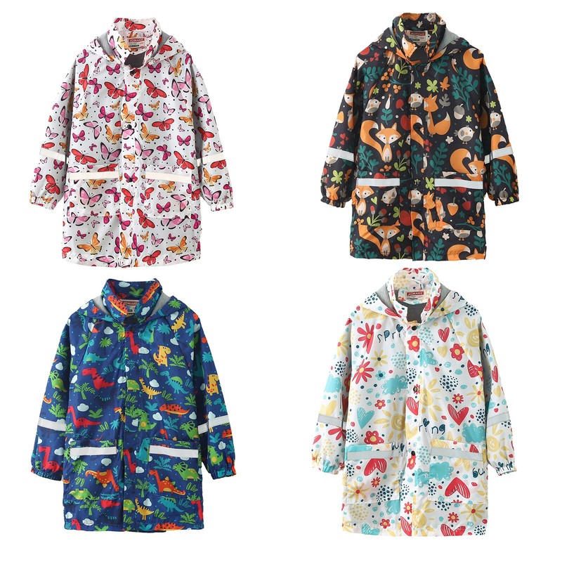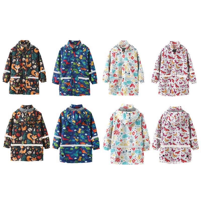 A knee length long jacket for child, with vivid cartoon print, making girl fashion and cute.