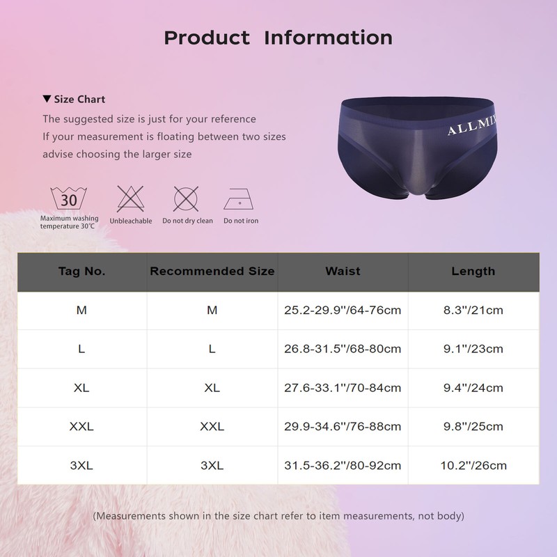 Seamless briefs work well with skinny sporty bottoms and other trousers for a neat look. Inside printed and tag-free design avoids any discomfort.