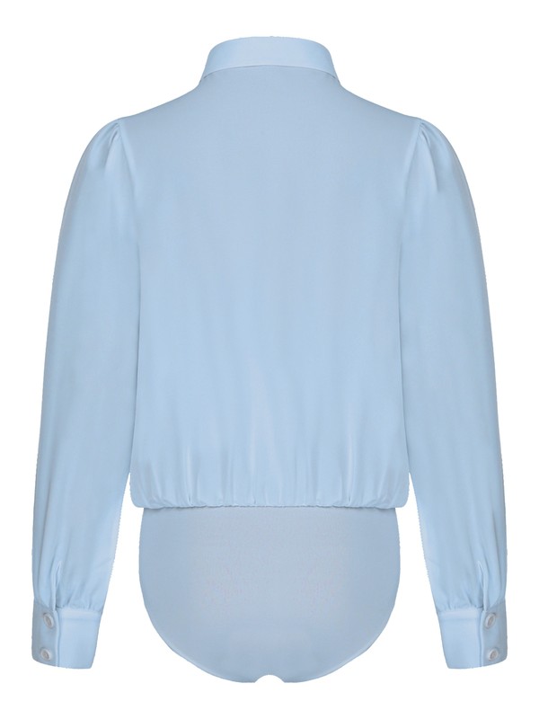 Long sleeve collared bodysuit can be worn with a wide variety of business or smart-casual outfits and looks good with or without a tie.