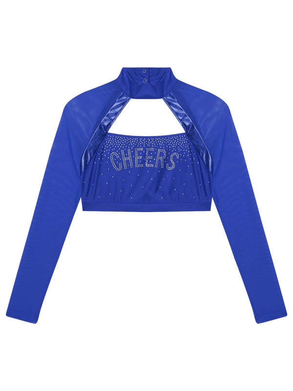 Adopts with bold colors and sparkling rhinestones, this dance crop top is sure to make you more eye-catching.