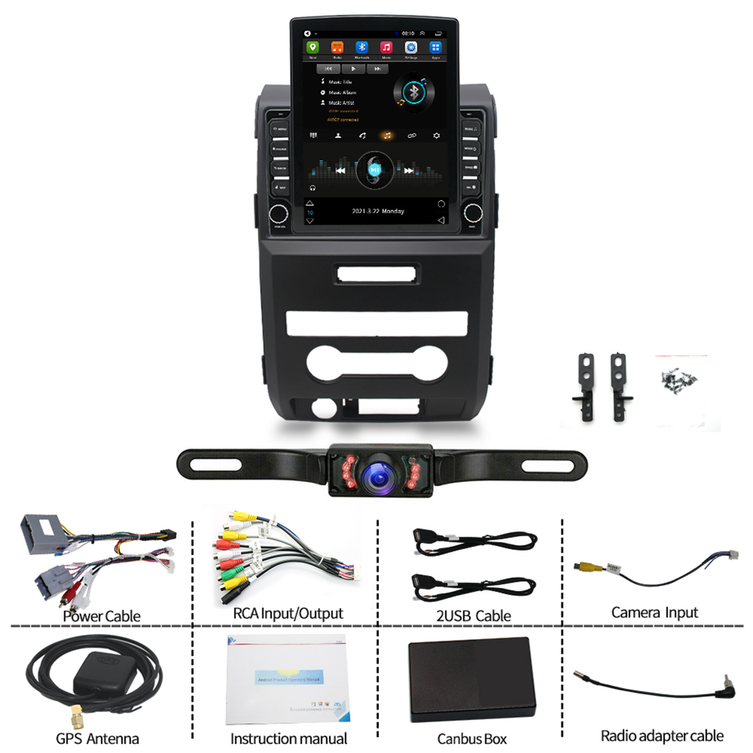 10.Built-in Bluetooth with A2DP/Hands Free/Phone book:Bluetooth hands-free calls,Bluetooth music player,Auto loading phonebooks