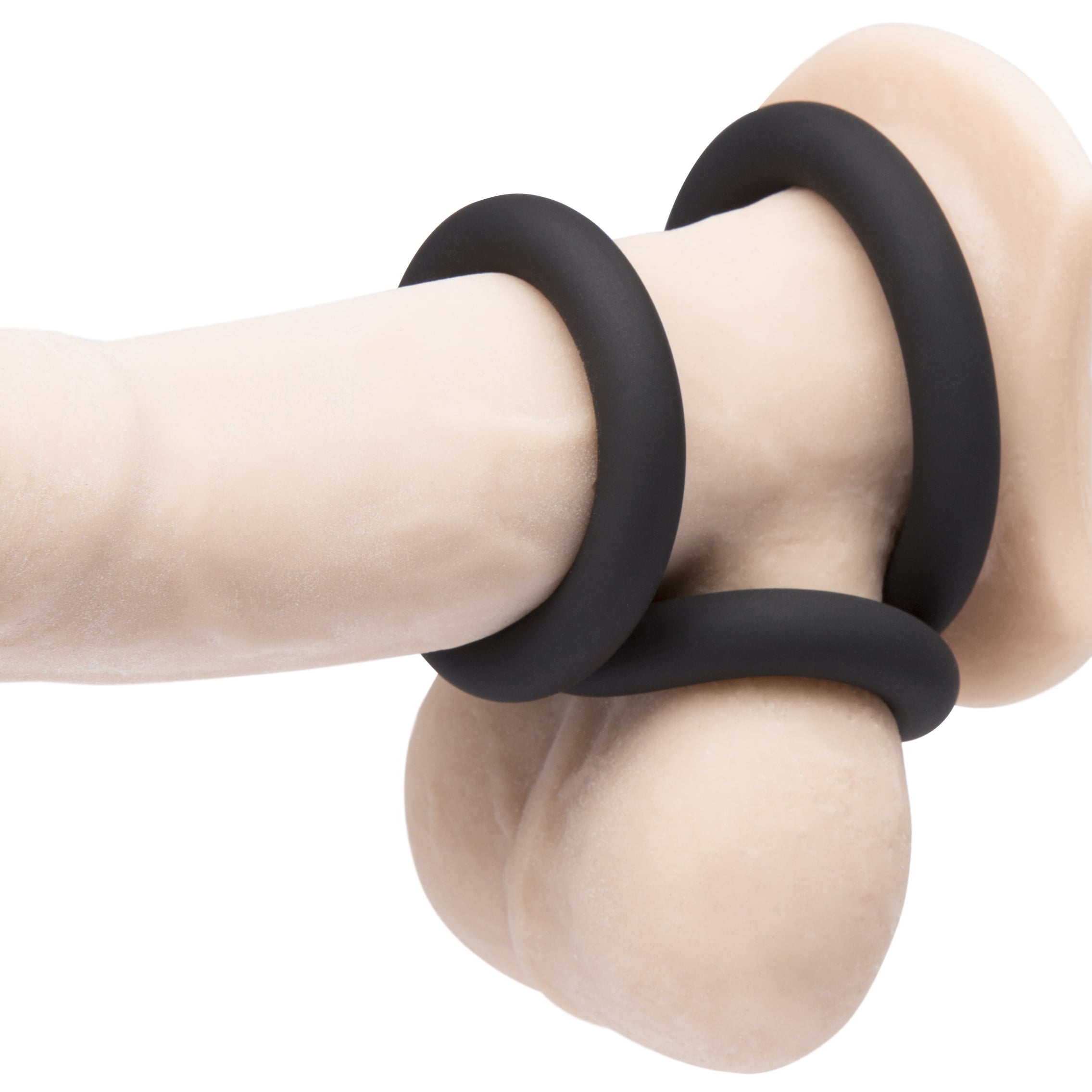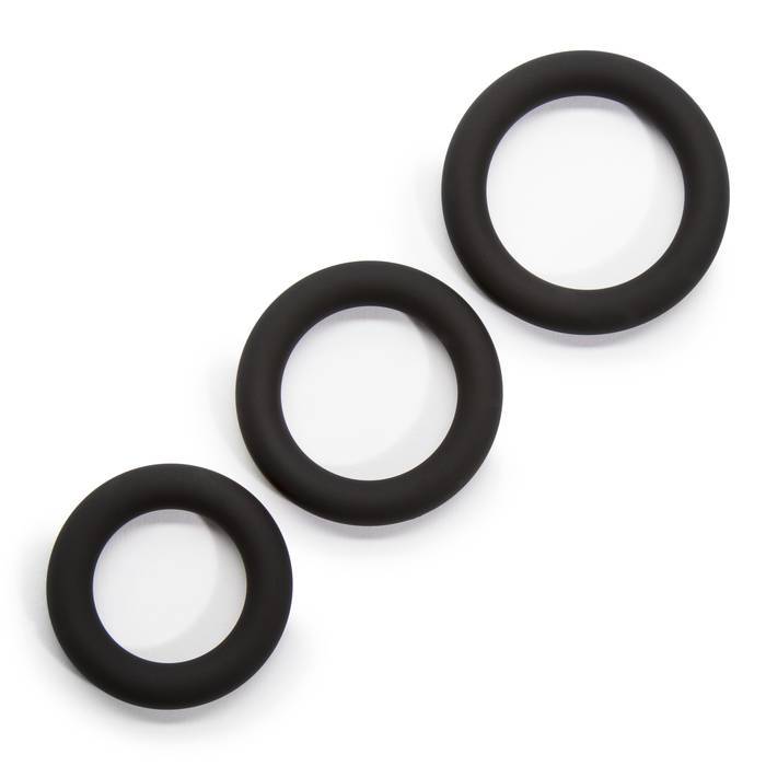 Harder erections could be yours with this set of 3 thick silicone cock rings. Designed to strengthen your erection and may delay ejaculation to enhance orgasms.