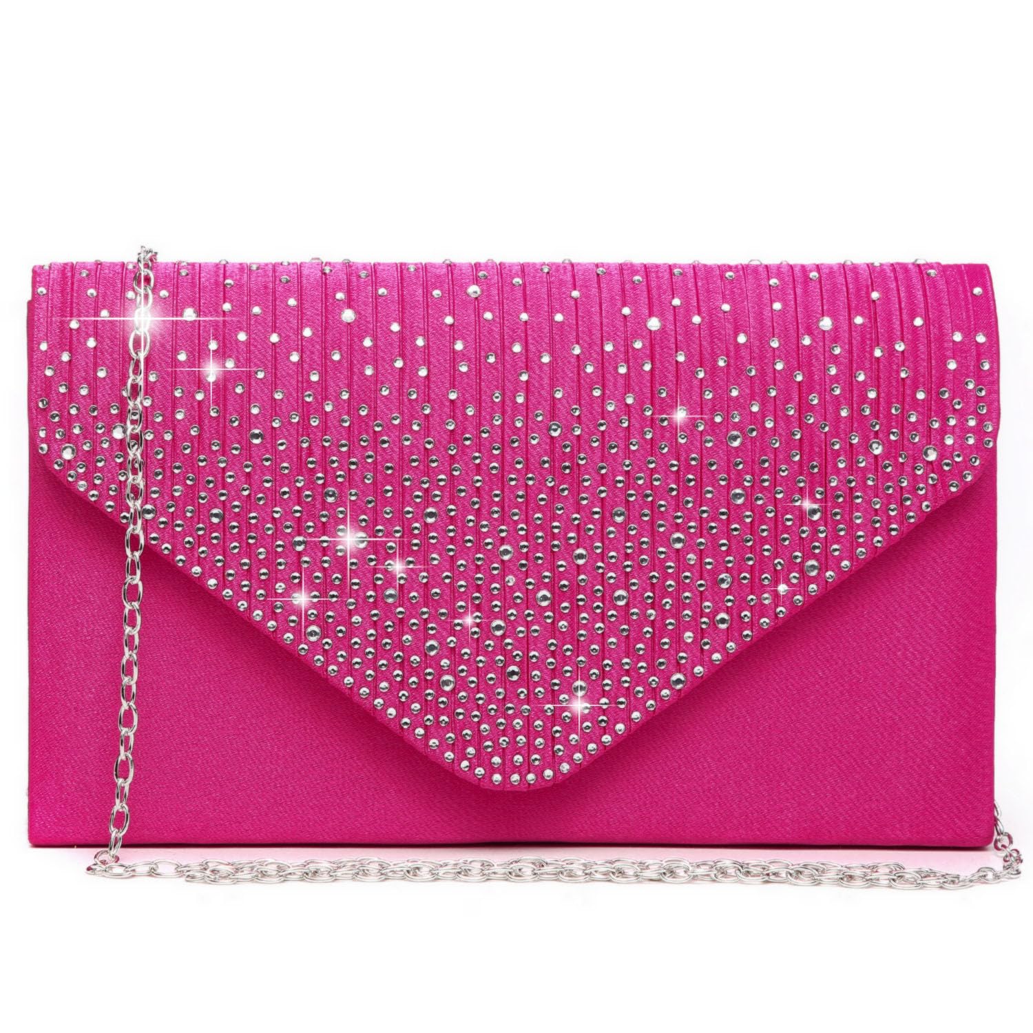 Features: Rhinestones in varied sizes on flap; Silver-tone hardware; This envelope-style evening clutch bag with glistening rhinestones that will make you glowing during special occasions.