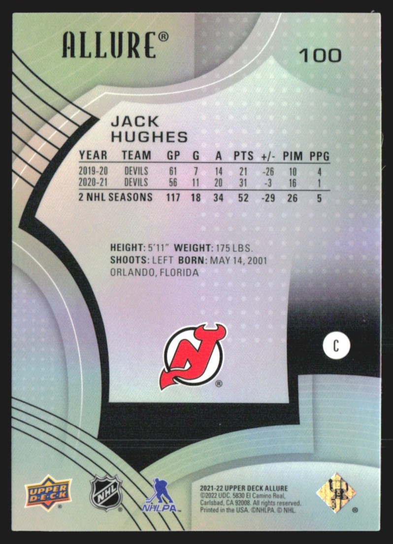 | 2021-22 Upper Deck Allure Jack Hughes #100 TM2 |