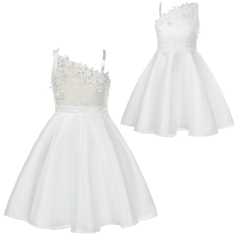 Kids Girls Embroidered Applique Party Gown One Shoulder Sleeveless A-line Tulle