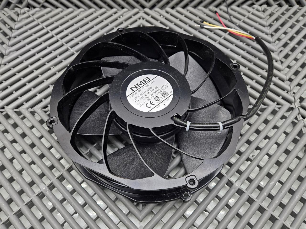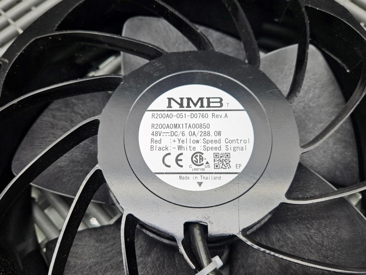 Here is an NMB R200A0-051-D0760 8" Speed Control Fan, 48VDC, 6.0A, 288.0W PWM. In good condition with minor cosmetic wear, pulled from working equipment. Minor scuffs from storage.