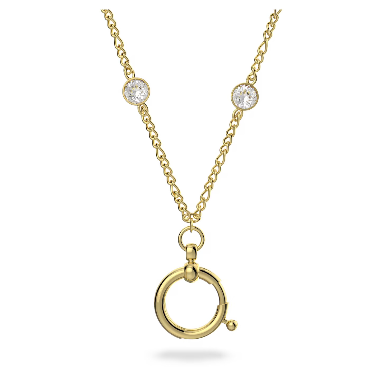 Unlock your jewelry box with this versatile carrier necklace from the Curiosa family. With a gold-tone plated chain and clear crystal embellishment this stylish piece features an innovative spring ring design to attach your favorite cocktail rings and create a showstopping pendant. Multi-use jewelry for your multifaceted life.Length- 21 5/8 inch.Pendant size- 7/8 x 7/8 inches.
