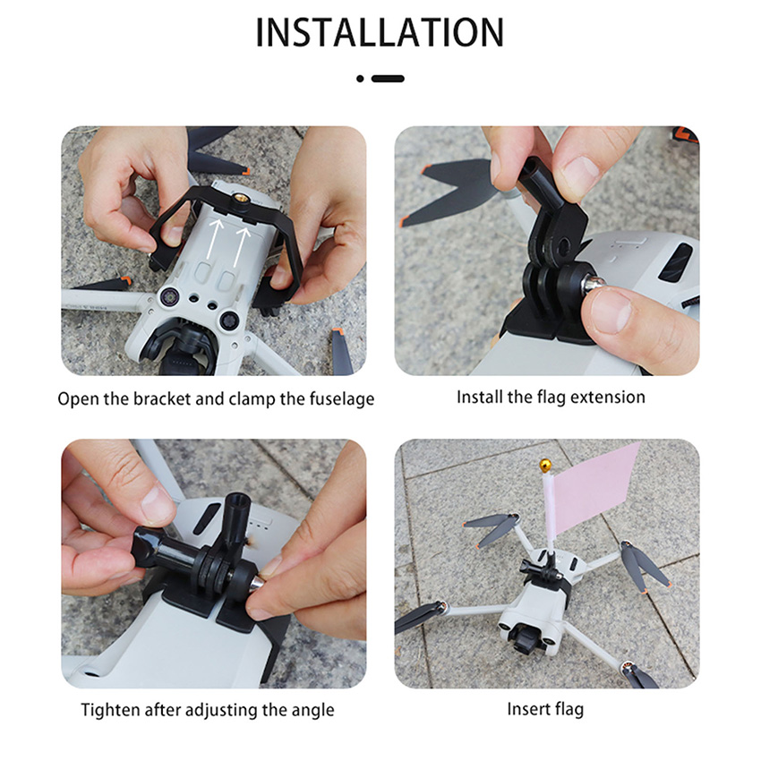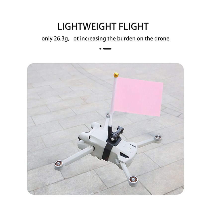l MINI4PRO/MINI3/3PRO Flag Expansion Mount is made of flexible material wear-resistant and durable, not easy to damage, fit the body, not easy to shake, will not affect the sensors and battery switches on the drone, weighs only 26.3g, does not aggravate the burden of the body does not affect the flight