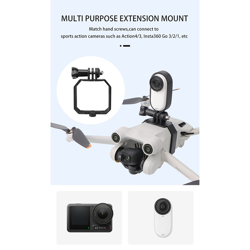 l Multi-purpose expansion mount piece bottom 1/4 screw holes can be connected with a tripod for handheld shooting, for more creation, with standard sports camera adapter with hand screws can be connected to Action4/3, Insta360 Go 3/2/1 and other sports cameras