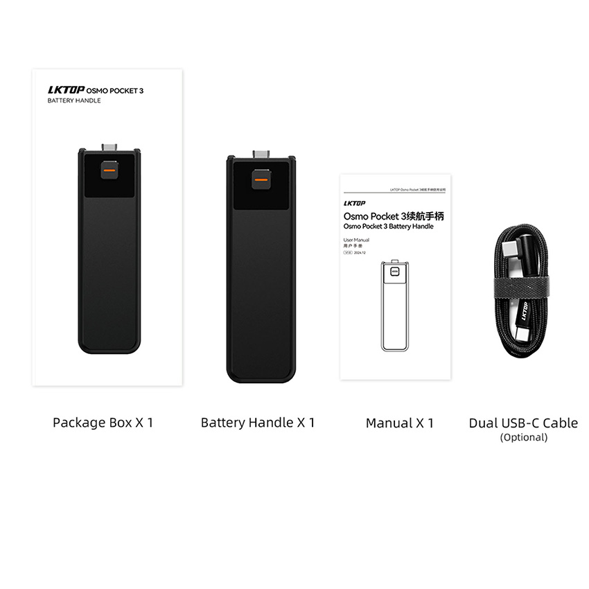 l 1x Package box, 1x Battery Handle, Manual, 1x Dual USB-C Cable