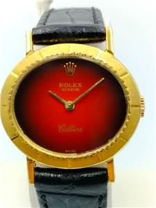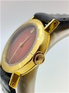 Authentic Vintage Rolex Cellini Red Vignette Dial Ref 4081 18K Yellow Gold Manual Winding Ladies Watch