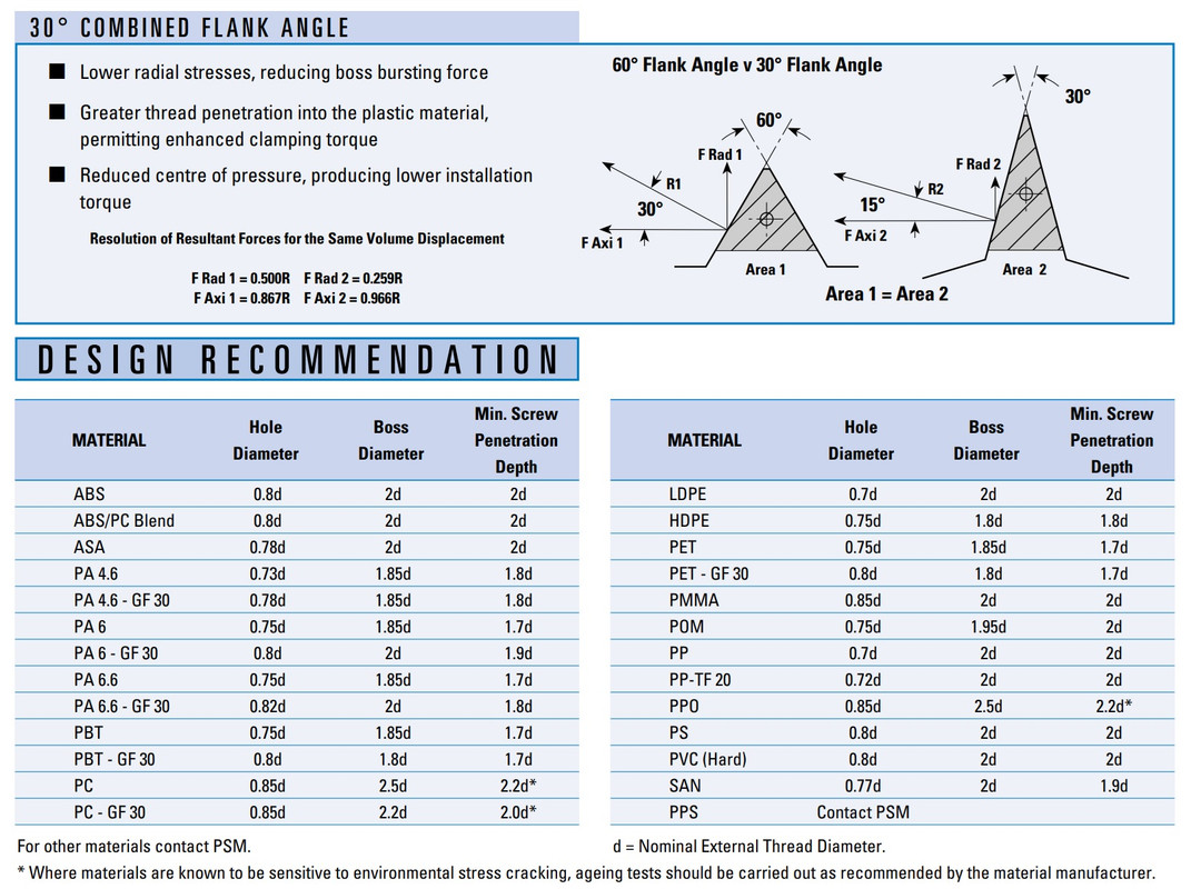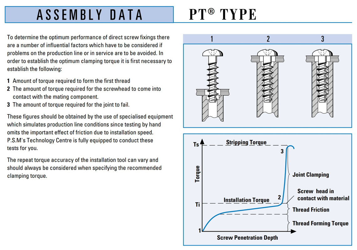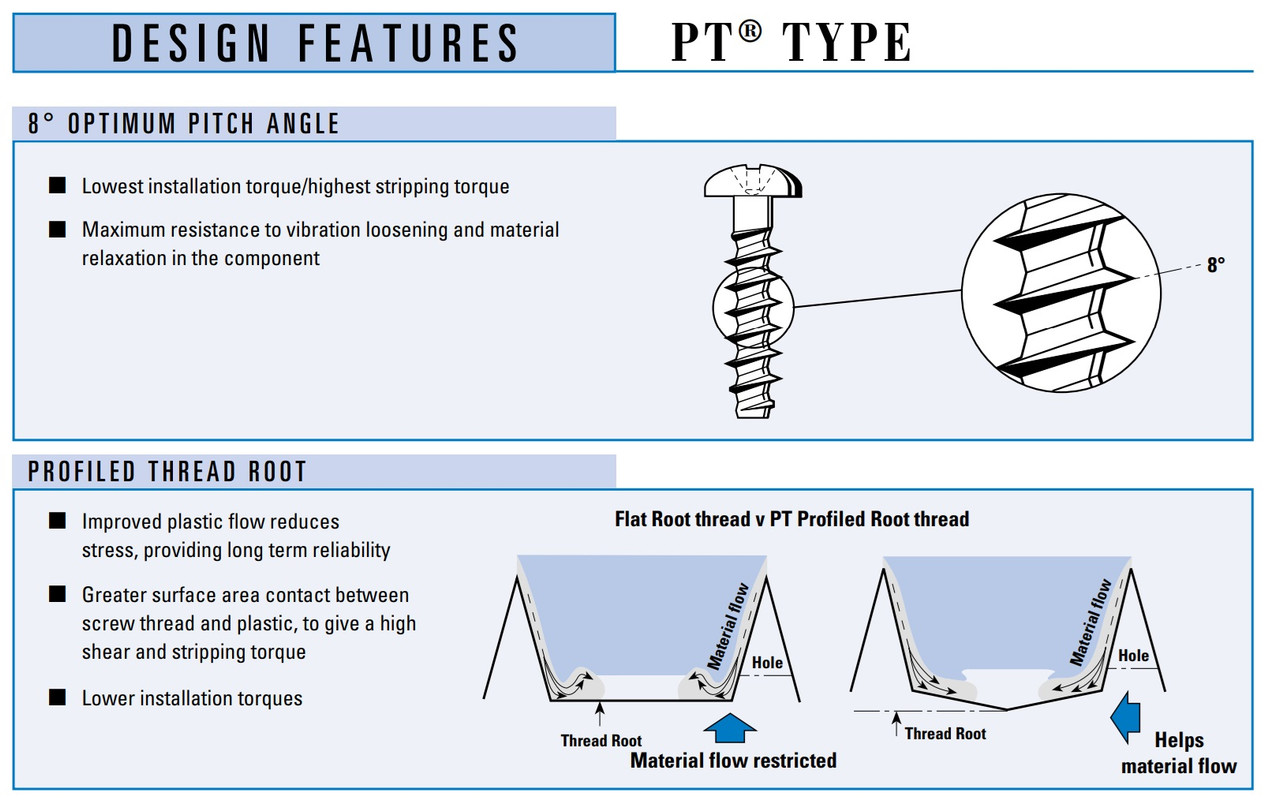 The unique patented thread forms of the PT® Screw range have been engineered to maximise the advantages of Direct Screw Fixings with forming screws for thermoplastic materials.
