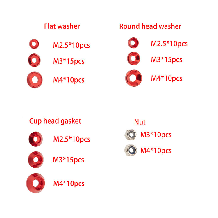 l Flat Washer Quantity: M2.5x10PCS, M3x15PCS, M4x10PCS
