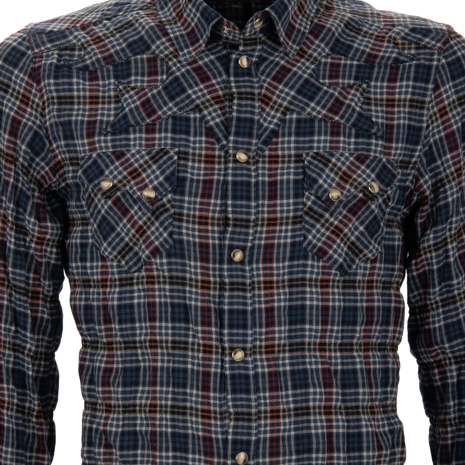 - Western style checked shirt with knitted design in blue by DOLCE & GABBANA