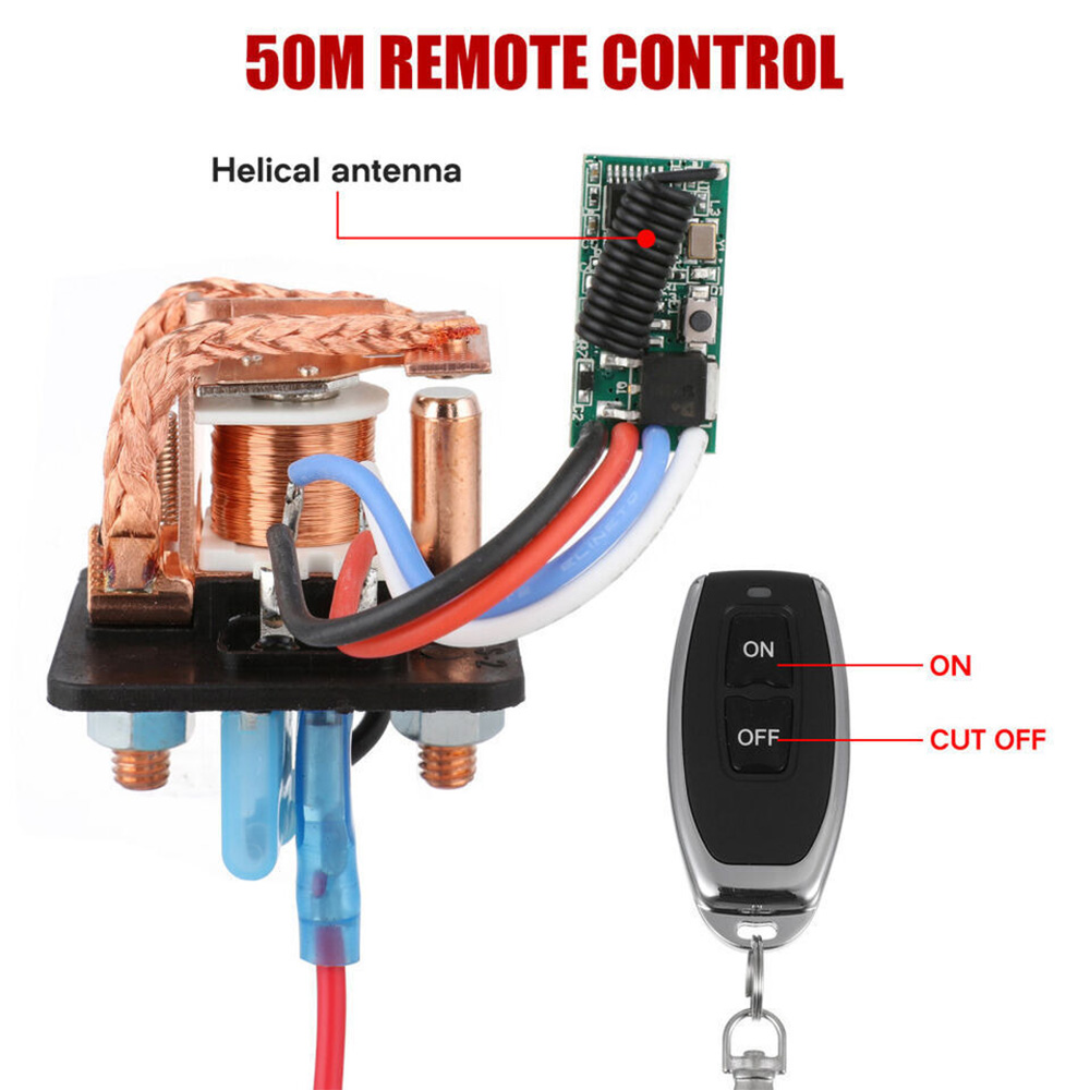 1. The red wire is connected to the positive pole of the battery and the black wire is connected to the negative pole of the battery, which supplies power to the switch. The remote control switch consumes very little power