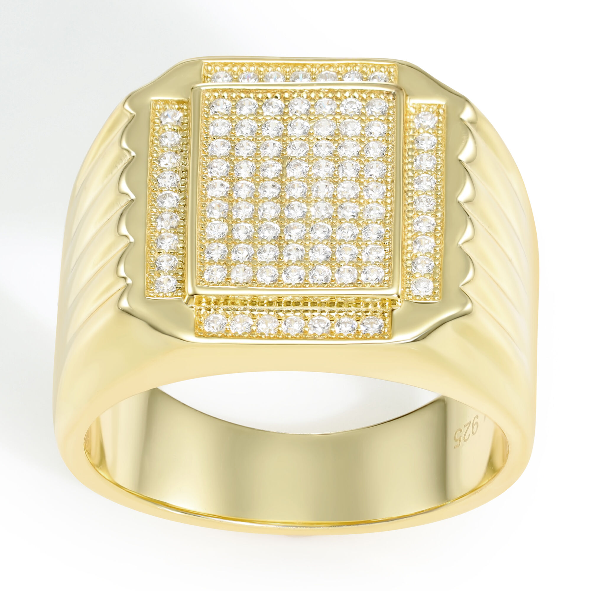 TILO Jewelry Gold Men's Pave Square Signet Statement Pinky Wedding Band Ring with Simulated Diamond CZ Stones, Yellow Gold Plated Classic Micro Pave-set Square Signet Statement Engagement Wedding Band Ring Men, Unisex