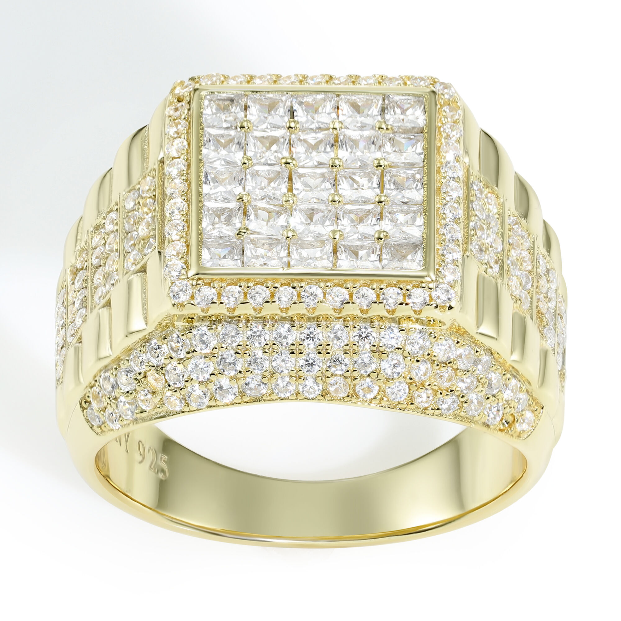 ✦ Sparkling high-quality square princess-cut cubic zirconia stones in micro pave-set
