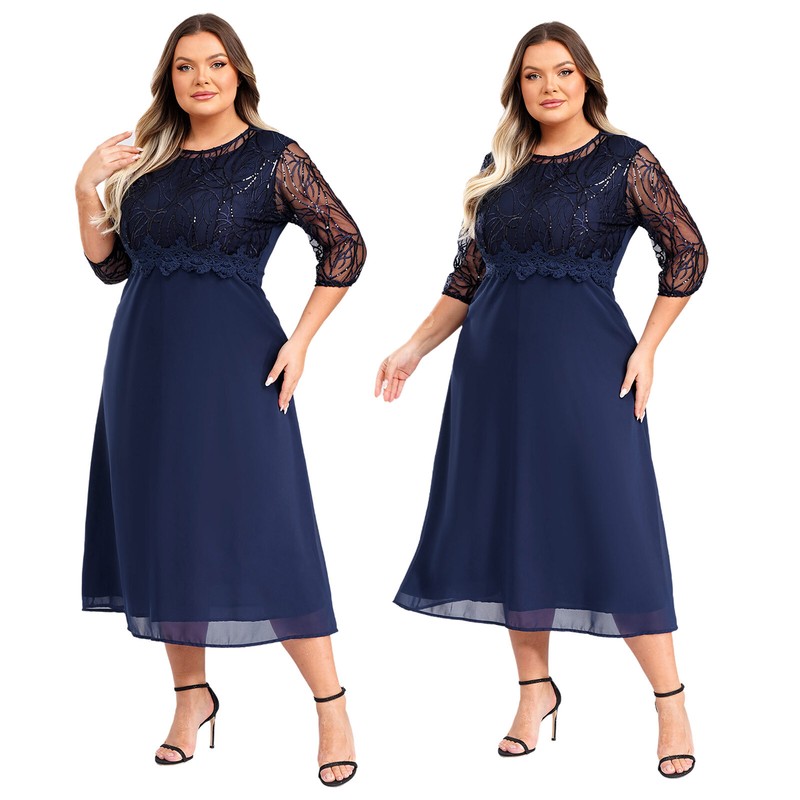 Womens Plus-SizeDress Elegant Party Shiny Sequins Embroidered Lace Patchwork