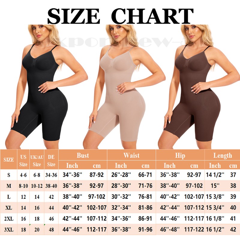 [Sizing Tips] This bodysuit looks tiny during the first try-on. It has a great fit and provides comfort. This waist-slimming body shaper offers 360-degree seamless coverage. It is made with smooth, soft, elastic, stretchable, lightweight, skin-friendly, breathable, and flexible material. You can measure your bust, waist, and hip by following our size chart. If you are in between sizes, please order one size up.