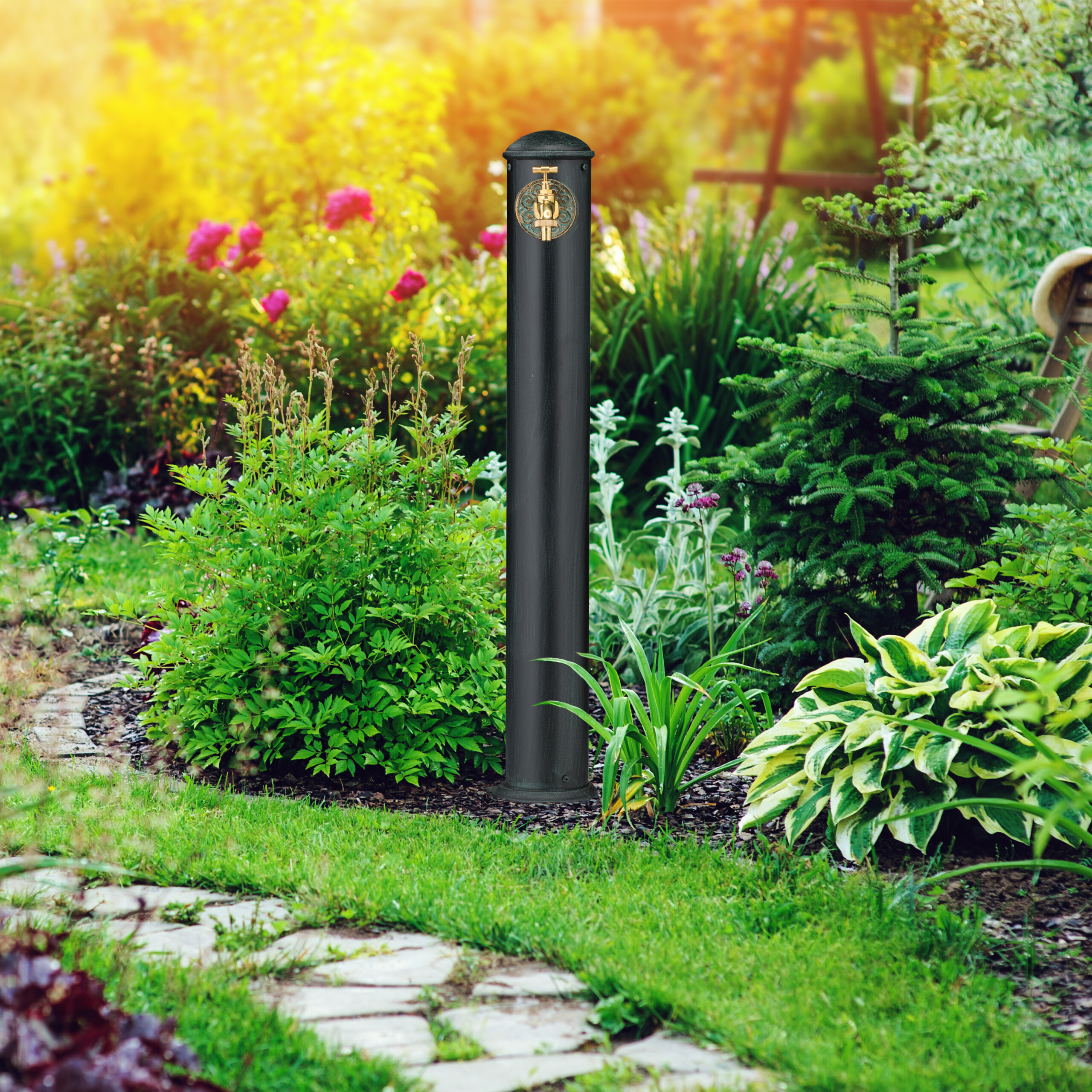 - Praktisch: Gartenbrunnen mit nostalgischem Wasserhahn - Anschluss für Schlauch im Säuleninneren