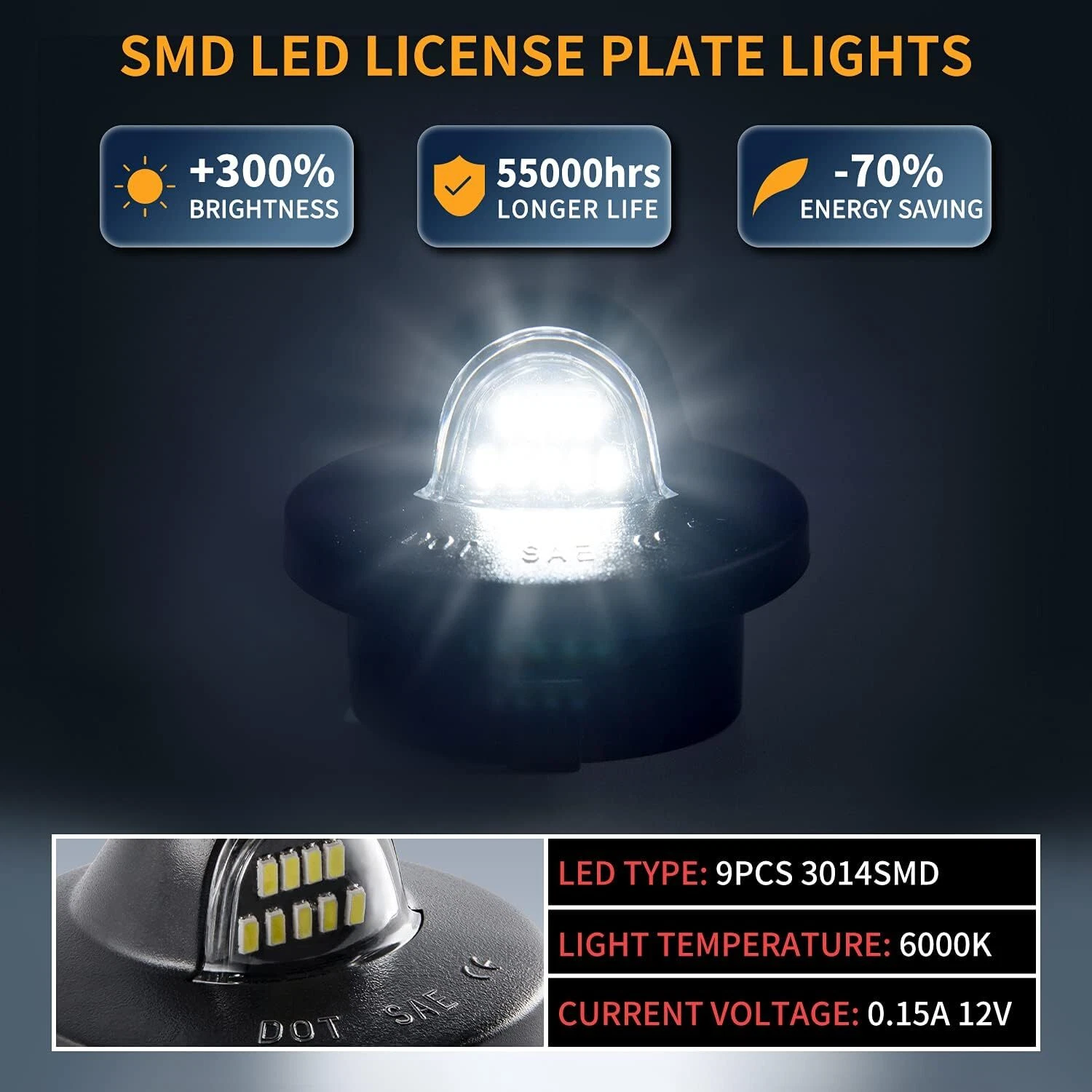 Features: 【EXTREMELY BRIGHT】The license plate lights built-in high power chips to maximize rear end illumination,10X brighter than your OEM light bulbs.This tag led lights will give your car a modern and luxurious appearance with enhanced safety at night. 【NON-POLARITY】Upgraded design,license plate tag light is no polarity, can light on two sides, no need more modification or flip. Play & Plug, easy install.Long-lasting life, 50,000 working hours. 【ERROR FREE & WATERPROOF】LED license plate light made of high-quality PC/ABS plastic lens and housing to keep out rain and snow effectively. 【EASY INSTALLATION】Easy to install, just plug and play. Specification: Product Name:License Plate Light Material:ABS+PC Color temperature: 6000K Life:>50000hours Voltage:12-24V Power:3W Waterproof Rating:IP67 Waterproof Number of LED:18LED Total, 9LED Per Light Connector: T10 (plastic) Item Weight: 60 g Compatible: For 1990-2014 Ford F-150 Package Included: One Pair LED license plate light