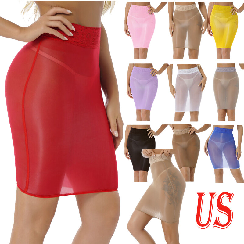 Glossy surface, solid color, high waist skirt with elastic waistband for comfy fit.