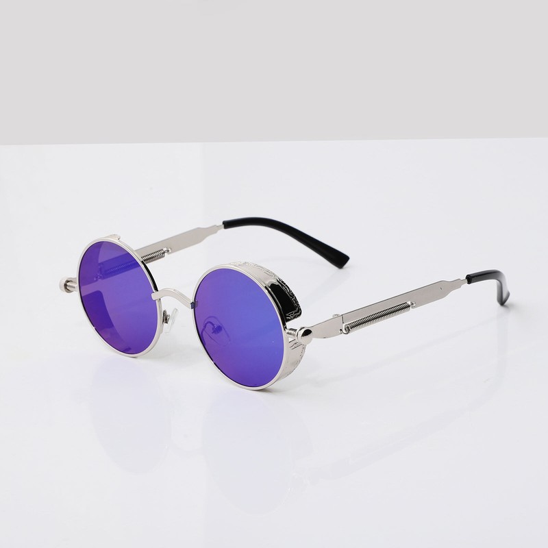 Cosplay glasses designs with metal frame and polarized lenses, screw-like endpieces, springs decorations and smooth tips.