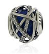 Depicting a starry galaxy crisscrossing lines of polished and sparkling sterling silver orbit a faceted blue crystal on this heavenly charm reflecting the serene beauty of the cosmos.