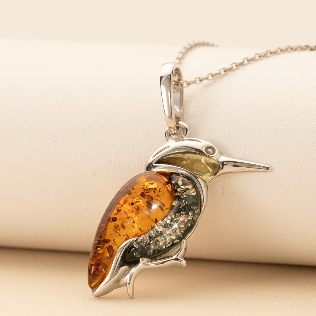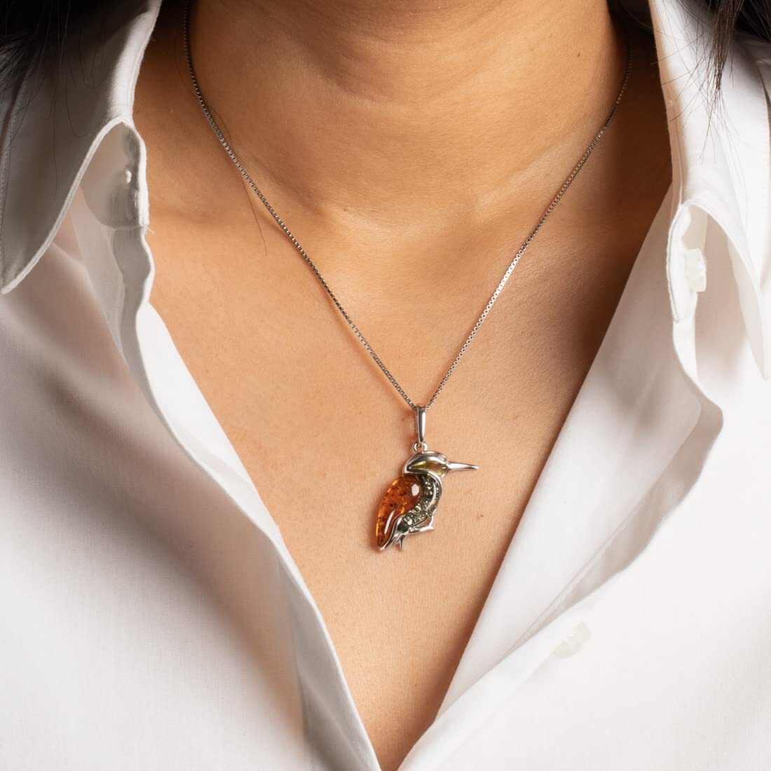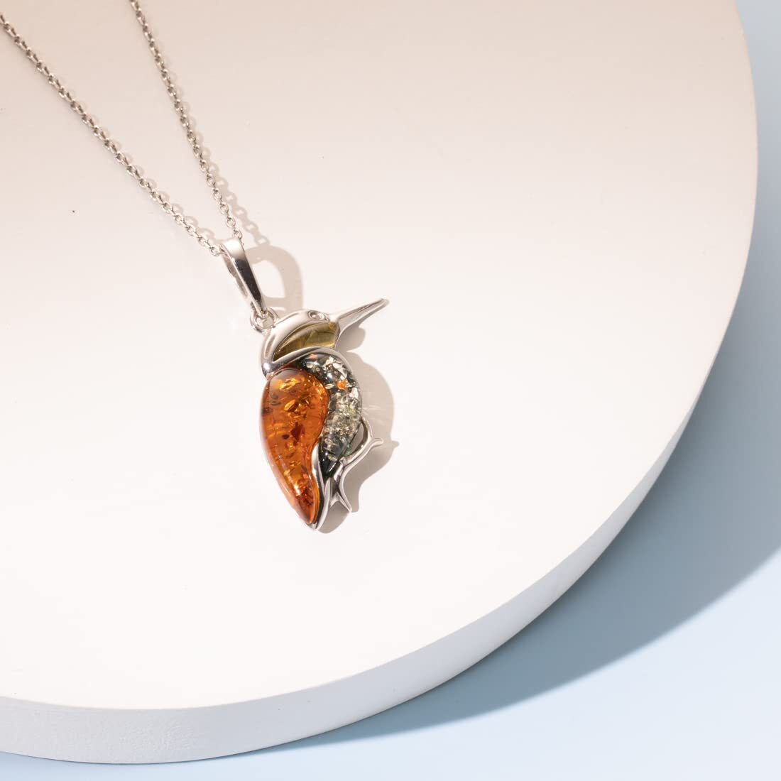 Baltic Amber Large Hummingbird Pendant Necklace Sterling Silver