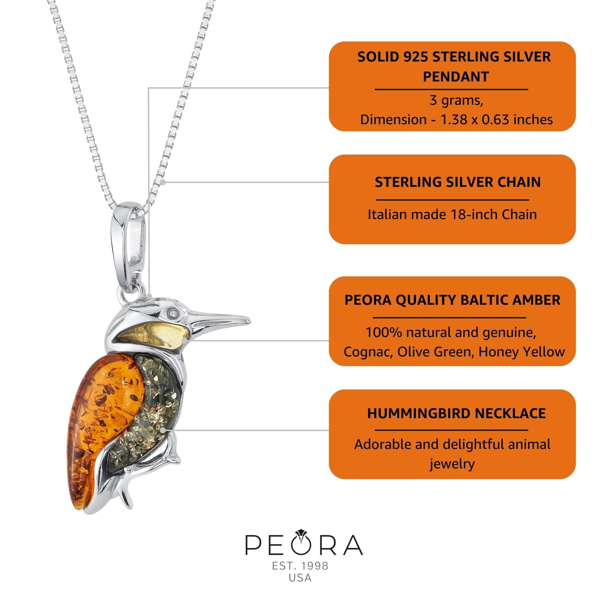 Relish in this natural and genuine Baltic Amber straight from the Baltic Sea. A specially cut adorable hummingbird Amber gemstone is hand-polished to a smooth finish, carefully preserving the beautiful organic characteristics of the remarkable stone. Made in 3 grams of premium 925 Solid Sterling Silver and finished with Rhodium for impeccable durability and shine.