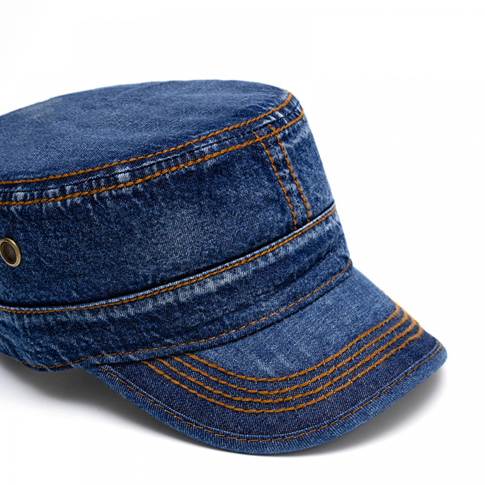 Men Denim Military Army Cadet Adjustable Flat Trucker Newsboy Hat Baseball Cap