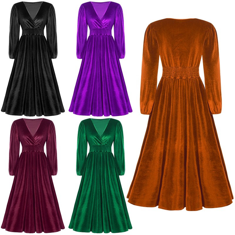 Tiered ruffles and the combination of deep V-neck and stand collar create an elegant and fashionable appearance. Zipper closure for easy wearing.
