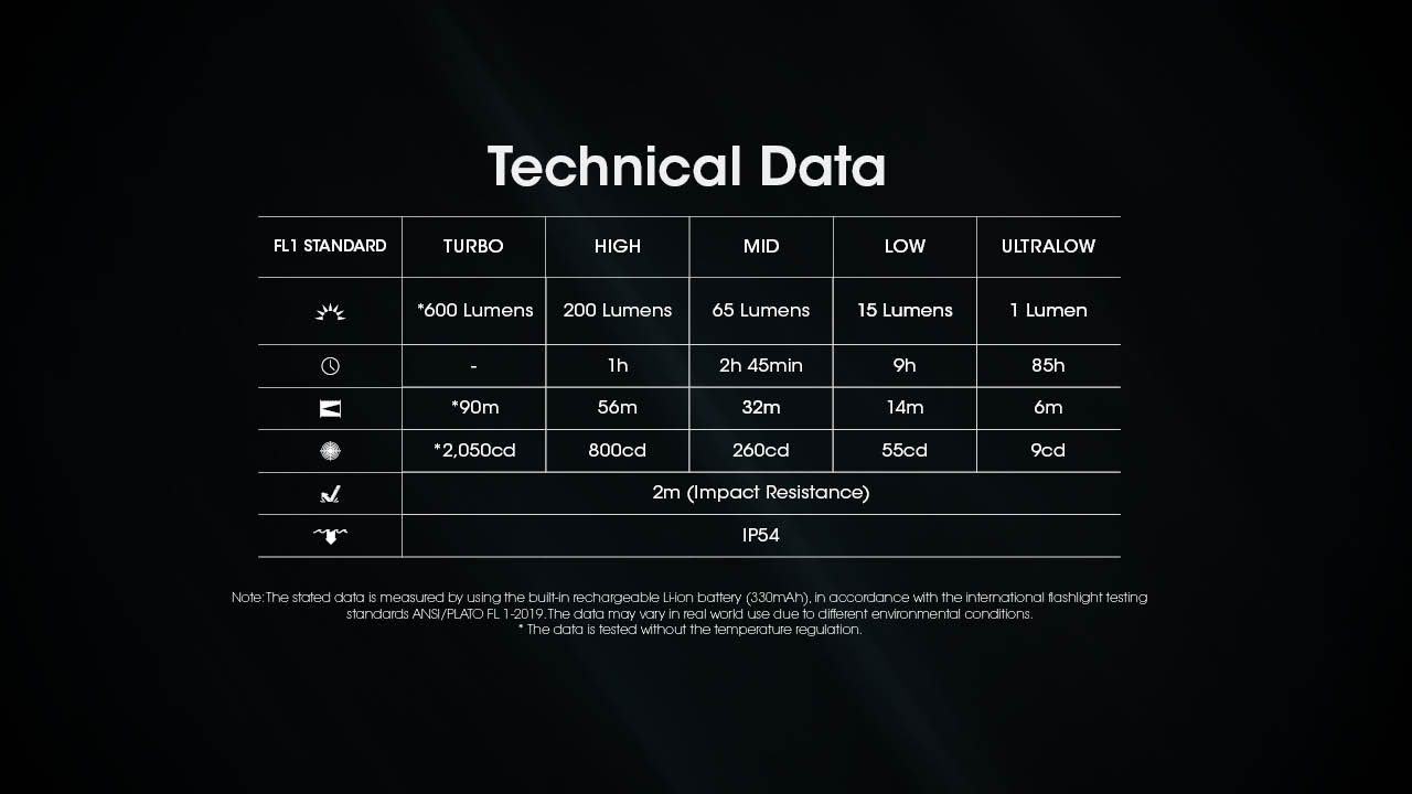 | Turbo | 600 lumens | ~ |