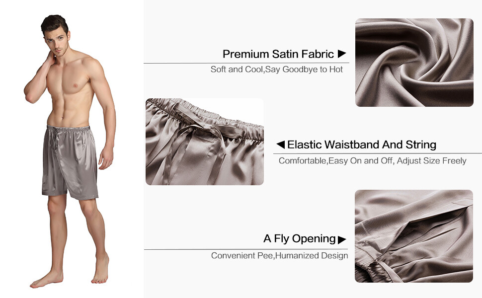 • ‍♂️High Quality Mens Pajama Shorts: Men's Pajama Bottoms is Made Of Premium Satin Fabric Provide More Resilience than Silk Shorts,Keep you Feel Warm in Cold and Cool in Hot to Ensure you Sleep Well.Our Sizes Refer to American Size,You can choose the Suitable Size Refer to Size Chart