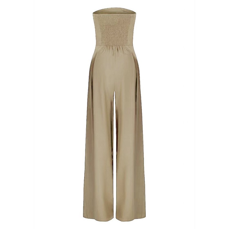 Solid color strapless off shoulder high waist wide leg jumpsuit with pockets, really highlights your elegance and nobility.