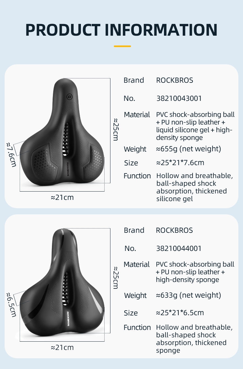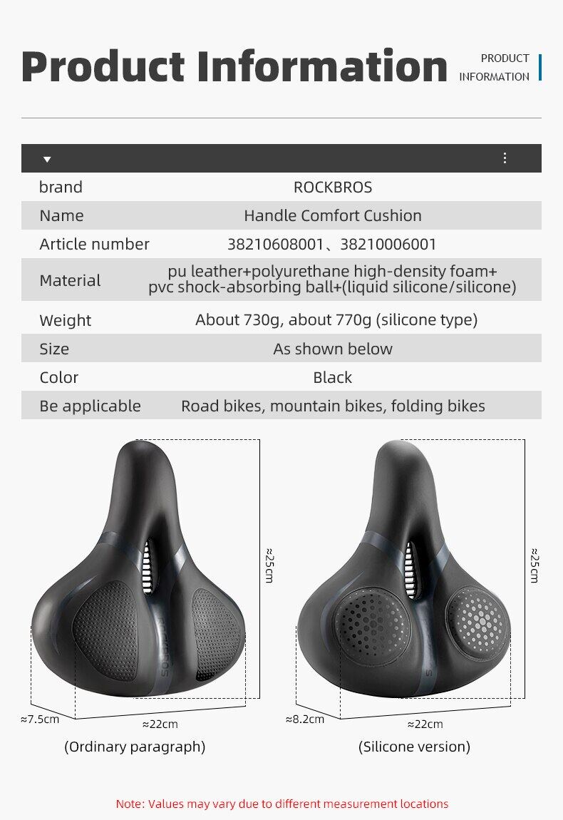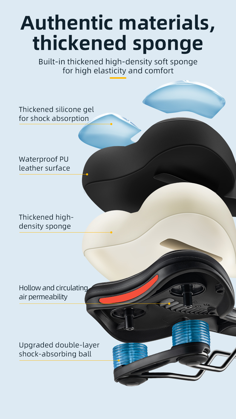 Built-in filled polyurethane high-density foam can effectively absorb road vibration and make cycling comfortable (silicone model with liquid silicone, better shock absorption)