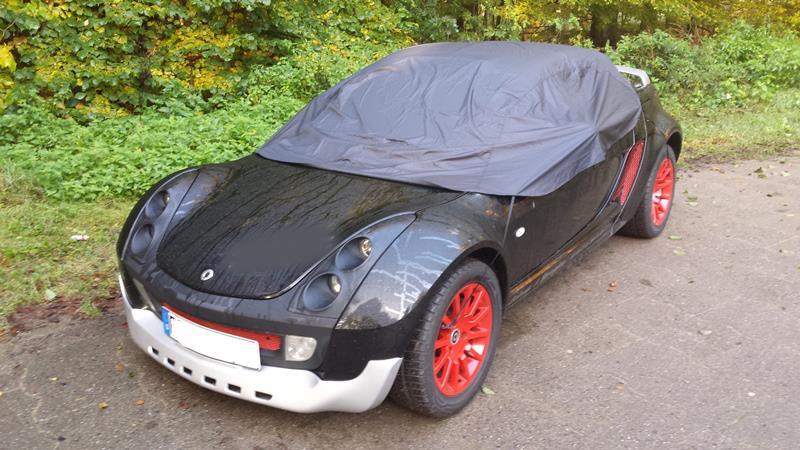 - Bitte vermeiden Sie das Cover auf ein feuchtes Fahrzeug zu legen und achten Sie darauf das dieses Cover nicht nass wird, da es zu Abfärbungen am Fahrzeug kommen kann.