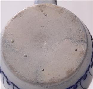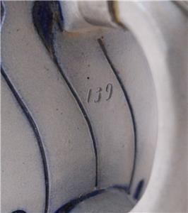 The stein is made of gray saltglazed stoneware with cobalt blue glaze - the very traditional Westerwald ware. The main design elements are typical Jugendstil ornaments. These ornaments are very common for Walter Mueller and Neidhart. The stein has no manufacturer's marks, only the model number 139. However, I made the attribution judging by the form, handle shape and design elements. The model number is also consistent with Walter Mueller numbering. Please see the scan of several W.Mueller Jugendstil beer stein from the Jurgen Schimanski book on Jugendstil beer steins.