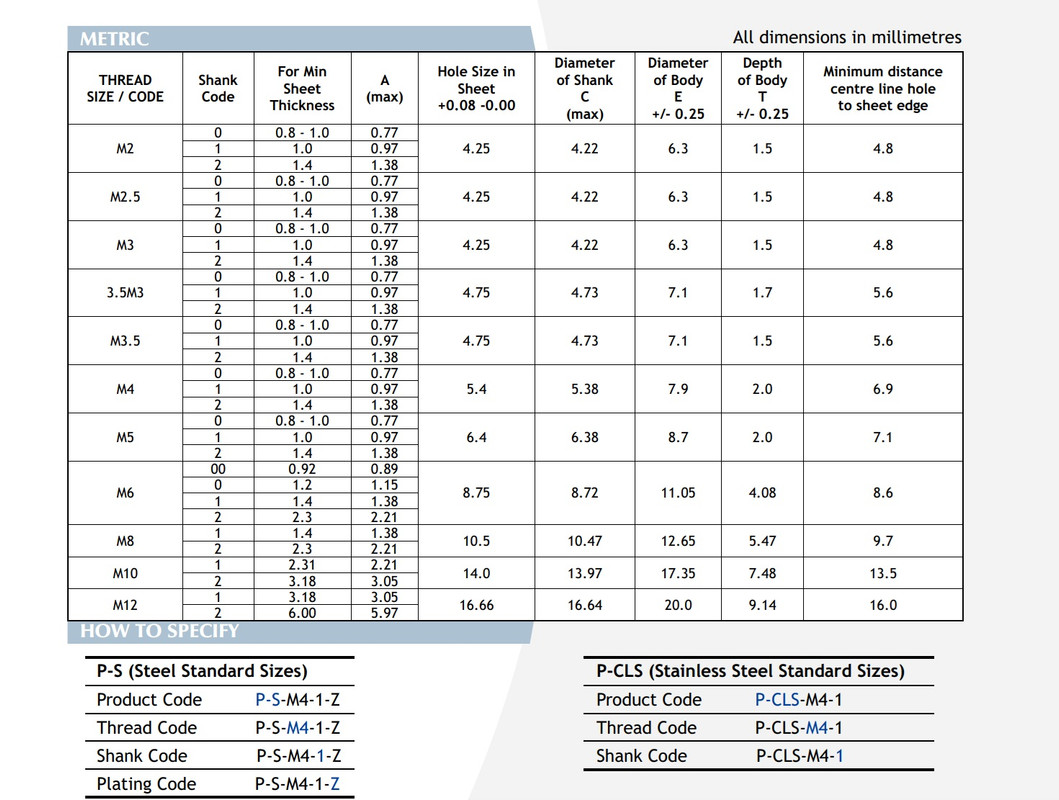 Various clinch fastener designs are available. Popular options include traditional self-clinching fasteners and Anchor® Rivet Bushes.