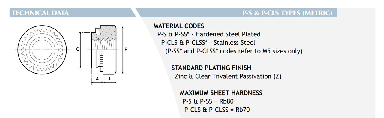 Design considerations include the required push-out and torque performance, mating material type (including ductility, hardness, and thickness), space constraints and/or proximity to material edge. Clinch fasteners offer many benefits including mitigating the need for loose hardware, facilitating final assembly, and ensuring ease of repair and/or disassembly.