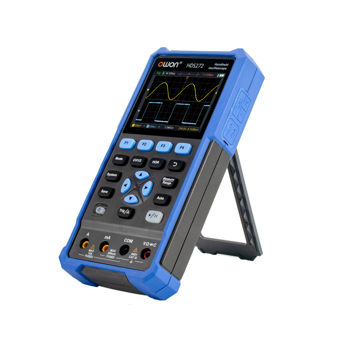 The OWON HDS242s is a powerhouse, seamlessly integrating the functionalities of an oscilloscope, multimeter, and a 25MHz waveform generator within a single, portable device, designed to elevate your precision tasks.