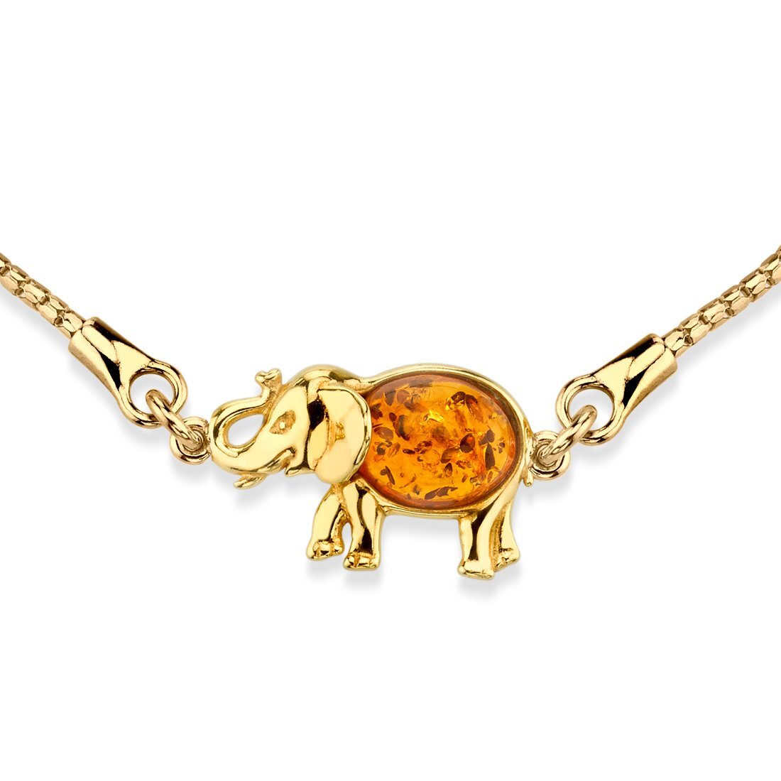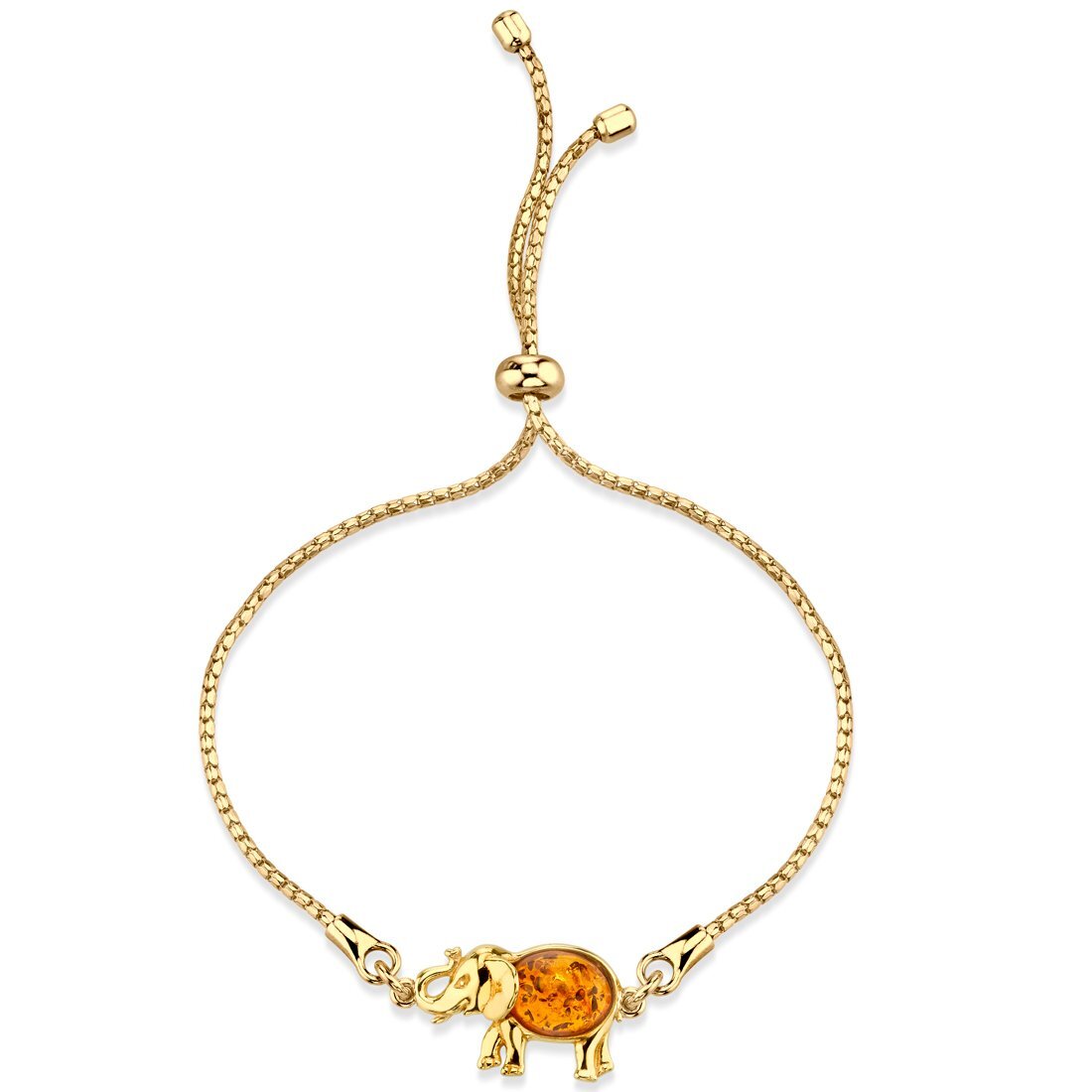 Baltic Amber Gold-Tone Sterling Silver Elephant Bolo Adjustable Bracelet