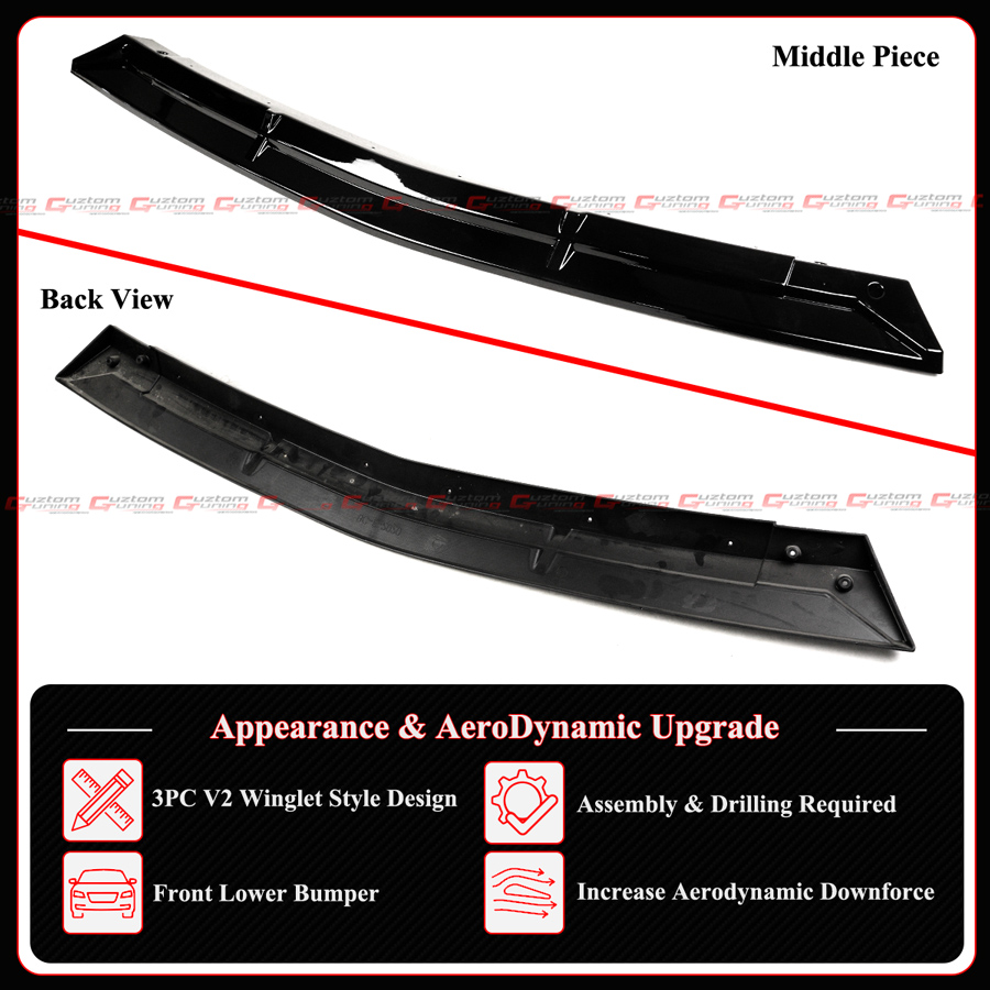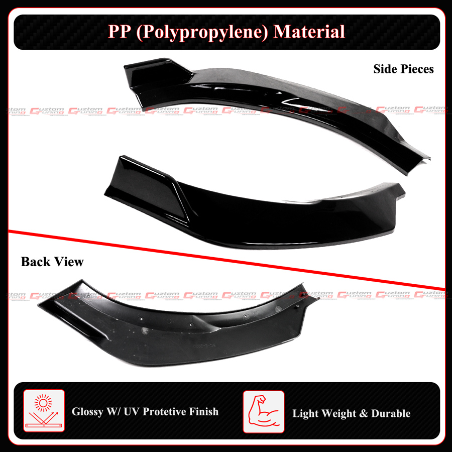 - Package Includes : 1 Set of 3 Pc Front Lip Splitters and Installation Accessories As Shown